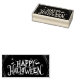 This stamp is of wood and features a Happy Halloween and spider webs graphic print.