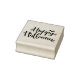 This stamp is of wood and features a Happy Halloween spider webs graphic print.