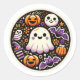 Add some spooky fun to your Halloween celebrations with this round sticker. Featuring a playful design of Halloween elements like a cute ghost, pumpkins, bats, and a smiling moon, this vibrant sticker brings the festive spirit to life. Perfect for party favors, decorating your notebooks, or adding a fun touch to any surface, these stickers are sure to bring some Halloween cheer!