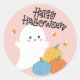 Say Happy Halloween with these darling stickers that you can easily add to trick or treat candy, favour bags, and more! Designed to be fun & playful, it features a friendly ghost with pumpkins on a pink background.