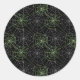Large round sticker shown in a scary Halloween spider webs print.