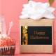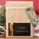 This rectangle sticker is shown with a Happy Halloween print with pumpkins and witch.