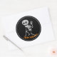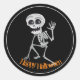 Sticker shown in a haunting Halloween skeleton print.