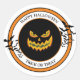 This small size round sticker is shown in a festive Halloween scary pumpkin face print.