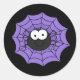 Round shape sticker shown in black with a Halloween spider print. Customise this item or buy as is.