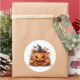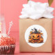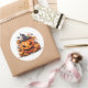 Round sticker is shown with a festive Halloween pumpkins art print.