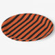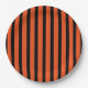 This Halloween paper plate is shown with a festive black and orange stripes design.