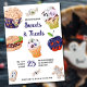 Sweets & Treats halloween party invitation. Design features revolting food, treats and candy including maggot burger, ghost cookie, eyeball muffins and spooky sweets. If you would like any matching items, please browse my halloween party food collection or message me to create the templates you need.