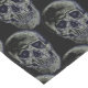 Table runner to accent your table decor is shown in a spooky Halloween skulls print on a Black background color.