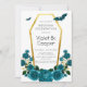 Halloween Teal Florals Gold Coffin Floral Wedding Invitation