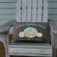 Let trick or treaters with allergies know that your home is a must-stop with this sweet outdoor porch pillow. Design features a smiling teal jack o lantern pumpkin flanked by smaller gourds, with "allergy friendly treats available here" in teal lettering.