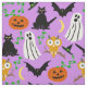 This cute Halloween toss pattern fabric design is made mostly in orange and black on a light purple background. It includes white ghosts, black cats and bats, orange pumpkins and light-orange owls. It's a whimsical cartoon pattern to help you celebrate at your spooky party. It's appropriate for kids or for a cute adult party.