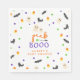 Having a Halloween themed baby shower? Here's an adorable design with "Peek a booo" on party napkins! Mum and baby ghost are surrounded by purple, orange, green and black Halloween themed confetti including bats, ghosts, witches' boots and candy corn. Easy to edit for your own Halloween theme baby shower!