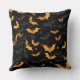This throw pillow is shown in a festive Halloween bats print design.