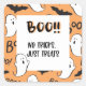 These adorable ghost stickers are a fast and easy way to decorate your Halloween party favours or treats. They say "Boo! No Tricks, Just Treats" with an adorable ghost on an orange background.