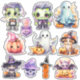 Kawaii Watercolor Style Pastel Halloween Clipart Sticker Bundle! This high-quality Spooky Halloween bat and pumpkin, Halloween cat with witch hat, Halloween dog with witch hat, Halloween Frankenstein, Halloween ghost, Halloween skull, Halloween pumpkin, and Halloween witch cooking pot sticker collection combines the charm of kawaii aesthetics with the whimsy of pastel hues, offering a unique and delightful take on traditional spooky Halloween design elements. From adorable Halloween cats, dogs, and Frankenstein to pastel-hued pumpkins, these Halloween doodle stickers add a playful touch to your Halloween projects. Whether you're creating party invitations or decorations, simply adding a touch of cuteness to your books or planners, or creating a sticker scrapbook, this cute, hand-drawn Halloween doodle bundle will add a spooky, fun touch to your creations. This bundle is your go-to choice for celebrating the season in a delightfully charming and not-so-scary way.