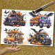 Rev up your crafting journey with our Halloween truck collage Decoupage Paper. Transform projects as scary truck brimming with pumpkins, ravens and a black cats creates eerie scenes. This sheet of 4 different scenes can be used for a variety of smaller projects. Unleash creativity with this captivating design.