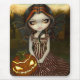 A moody Halloween painting - I've painted this winged beauty at twilight - there is a smoky dusk in the air as the unseen sun is setting. The bare trees give a taste of chill in the air. There's a big lovely Jack O'lantern too, grinning mischievously in the lap of her elaborate striped gown.. My own original acrylic painting.
