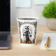 Add a magical touch to your twin baby shower with this Halloween-themed paper cup. The design features a vintage-inspired pregnant witch in a starry gown holding two bubbling cauldrons with purple smoke, symbolising the twins on the way. Surrounded by pumpkins, bats, and ornate floral accents in orange, black, and gold, it perfectly blends Halloween charm with the joy of expecting. On the back, customisable text allows you to personalise with the mum-to-be’s name and event date. A festive and unique party essential for an unforgettable autumn twin baby shower.