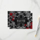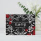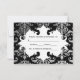 Personalised Gothic style wedding RSVP card for your Halloween or vampire theme wedding. It is black with a light to dark grey damask pattern on it and blood splatters that you can remove if desired. Add your own text on the front and the back.