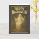 The bold “Happy Halloween” headline in playful retro serif adds a festive flair, perfectly framing the haunting yet heartwarming scene. Whether you’re sending spooky greetings to friends or adding a decorative touch to your Halloween display, this card brings a delightful blend of sweetness and spookiness that’s sure to enchant.