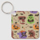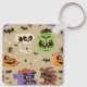 Halloween vintage pattern keychain that includes skulls, pumpkins and more to add to your Halloween keychain collection.
