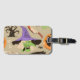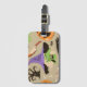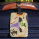 Halloween vintage pattern luggage tag that includes knife, witch, and bats to add to your Halloween travel accessories collection.