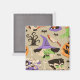 Halloween vintage pattern magnet that includes knife, witch, and bats to add to your Halloween souvenir/magnet collection.