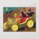 A beautiful vintage Halloween postcard featuring a pumpkin character, a witch and a black cat in a watermelon coach.
