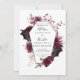 A unique floral water colour coffin cutout and bat wings are the centre piece of this design. This design mixes elegance and goth.