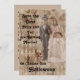 Halloween Wedding Invitation on a tan background with skeletons and symbols. Save the date for October 31st. All the words can be changed on the invite. Thanks to Pixabay and Creative Fabrica for some of the elements in the design.