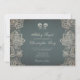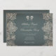 This spooky Halloween wedding invitation features a skull and crossbones couple on a vintage grey background with gothic lace. Perfect for wedding receptions, rehearsal dinners, anniversary parties, and Halloween parties. Click on the images below to order matching items to coordinate with your wedding invitation or visit www.zazzle.com/vginvites to see other scary wedding invites.