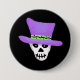 Have fun with this badge pin featuring a whimsy skeleton skull with a purple top hat. Great to wear for Halloween festivities, parties and meetings. This skull came from hand painted original art featuring three dancing skeletons with a purple top hat on their skulls and is in the colours black, white and purple. Check for my other products with this art for goulish products for Halloween including greeting cards, tee shirts, posters, wall decals, electronic device cases and more. Fully customisable for personalisation. The original art is by Phyllis Dobbs who wishes you a happy and ghoulish Halloween.
