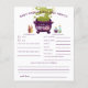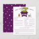 Cute halloween theme baby shower baby predictions and advice card featuring an illustration of purple witch's cauldron fuming green smoke with candles and potions. The texts are editable. Perfect game to play during the shower and will definitely be a great keepsake! The card asks guests to predict what the baby would look like.