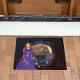 Check this beautiful Halloween funky DOORMAT featuring a Halloween witch in a purple dress making a brew, with a tree, moon owl, and crawling purple spider and a cat in the background. This can enhance not only your Birthday Party decor but also the Halloween time.