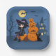Halloween Witch, Black Cat, and Pumpkins Paper Plate