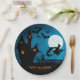 Halloween Witch Black Cat Bats Party Paper Plate. Choose the size of the plate, as desired.