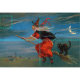 Hallowe'en Witch & Black Cat on Halloween Night Fabric