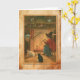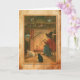 Charming vintage image of witch warming herself by the fireplace. Design presented on distressed grunge background and frame with additional texturing of the image.