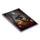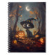 A black cat wearing an orange colour and black witch hat sits under a crescent moon in a fall forest surrounded by leaves and glowing Jack-o-Lanterns. This cute notebook is perfect for celebrating the spookiest season of the year - Halloween!