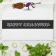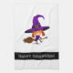 Kitchen towel is shown in white with a cute Halloween witch print.