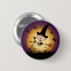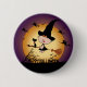 Cute little witch flying off on her broomstick with her cat to a Halloween party.