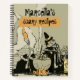 A perfect place for all your Halloween recipes is this scary witch recipe book. Two black cats stare as the cauldron bubbles and the witch stirs the brew.