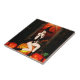 This design features A Halloween witch sitting on a pumpkin and surrounded by a eerie orange and black backdrop. Great gift for Halloween!