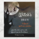 Halloween wine label featuring a witch on a broom flying through a moonlit night from her castle with bats circling around. Great for a special Halloween celebration.