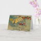 This comical early 1900's Victorian era Halloween card features witches riding in a demon powered aeroplane with jack-o-lanterns flying along beside them. A black cat is also along for the ride.