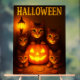 This Halloween artwork portrays the magical essence of autumn nights with glowing pumpkins and the watchful eyes of adorable orange cats. The composition radiates warmth from the lantern and jack-o’-lantern, casting a cosy golden light that contrasts with the playful mystery of the cats. Ideal as seasonal wall décor for living rooms, entryways, or festive gatherings, this poster combines whimsical feline charm with the timeless spirit of Halloween. A perfect gift for cat lovers, Halloween fans, and those who appreciate enchanting seasonal art.