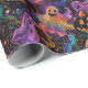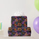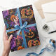Holiday gift wrapping paper is shown in a festive Halloween print.