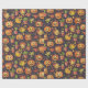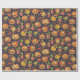 Halloween Wrapping Paper - Design No. 2 : A pumpkin and cactus inspired design on a dark blue background. With spiderwebs and vines adding a finishing touch to the design.