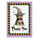 Send thanks for having a howling good Howl-oween party celebrating Halloween with your Yorkshire Terrier puppy wearing a witch hat.